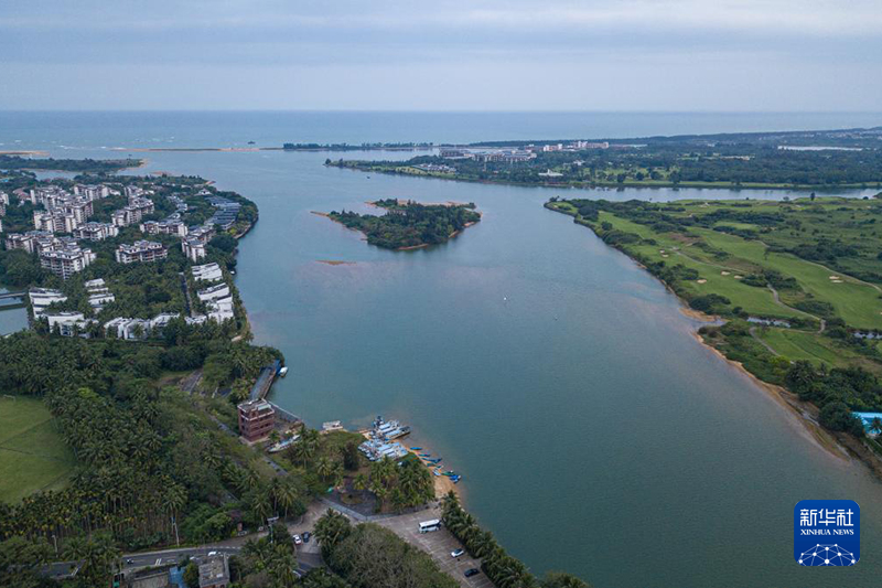 這是在海南環島旅游公路沿線拍攝的萬泉河入??诰吧?月13日攝,無人機照片)。