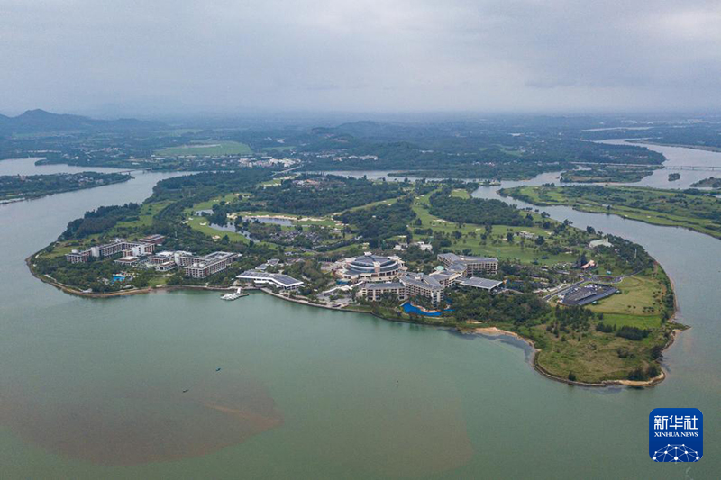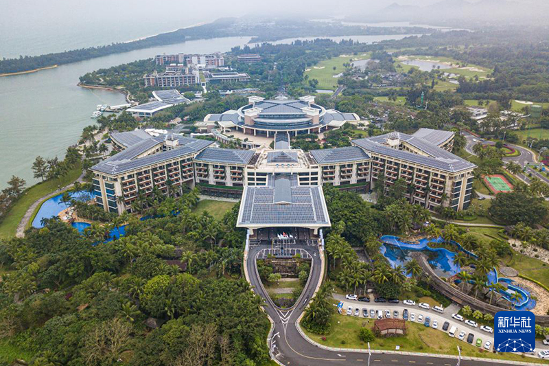 這是在海南省瓊海市博鰲鎮東嶼島拍攝的博鰲亞洲論壇國際會議中心和博鰲亞洲論壇大酒店(3月9日攝,無人機照片)。