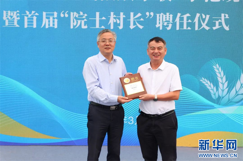 三亞市崖州區“錢糧雙豐收”示范現場會暨首屆“院士村長”聘任儀式現場。新華網發(李學仕 攝)