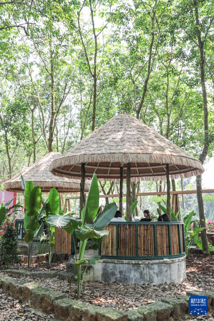 4月4日,游客在海南定安大山村的水塔咖啡屋休息。新華社記者 張麗蕓 攝