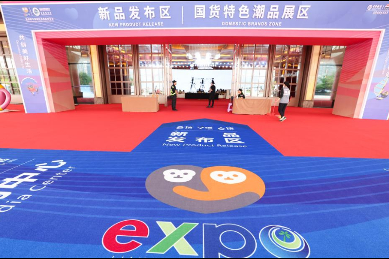 這是4月12日拍攝的第四屆中國國際消費品博覽會新品發布區和國貨特色潮品展區。