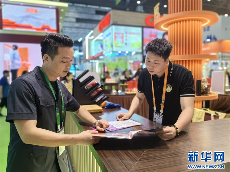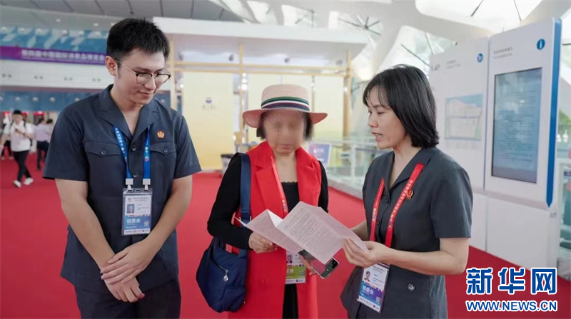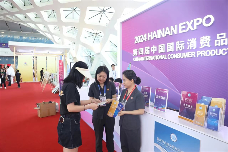 海南自由貿易港知識產權法院干警在消博會主會場提供知識產權司法保護法律服務。新華網發(邱詒柘 攝)