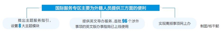 省營商環境建設廳相關負責人介紹,國際服務專區主要為外籍人員提供三方面的便利:一是推出主題服務指引。專區以外籍人員來瓊工作生活主要需求為導向,設置政務服務、投資、旅游、生活、工作、留學、購物、自貿港特色服務等8大主題模塊,實現了政策信息的快速導航和辦事服務的精準直達。