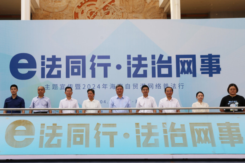 4月19日,“e法同行·法治網事”主題宣傳暨2024年海南自貿港網絡普法行啟動儀式。新華網發
