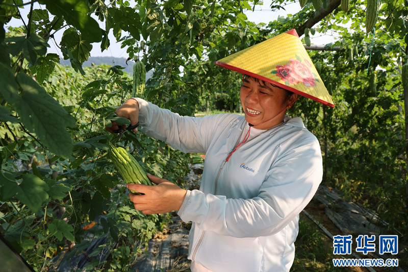 農民在種植基地里采摘苦瓜。新華網發