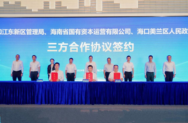 海南國資運營公司、江東新區管理局、美蘭區政府簽約現場。新華網發