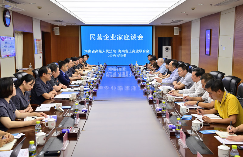 4月25日下午,海南省高級人民法院與海南省工商聯以“加強司法保障,優化民營經濟發展法治環境”為主題召開民營企業家座談會,聽取民營企業家代表對司法服務保障民營經濟發展的意見建議,提升司法服務保障水平,促推海南民營經濟高質量發展。