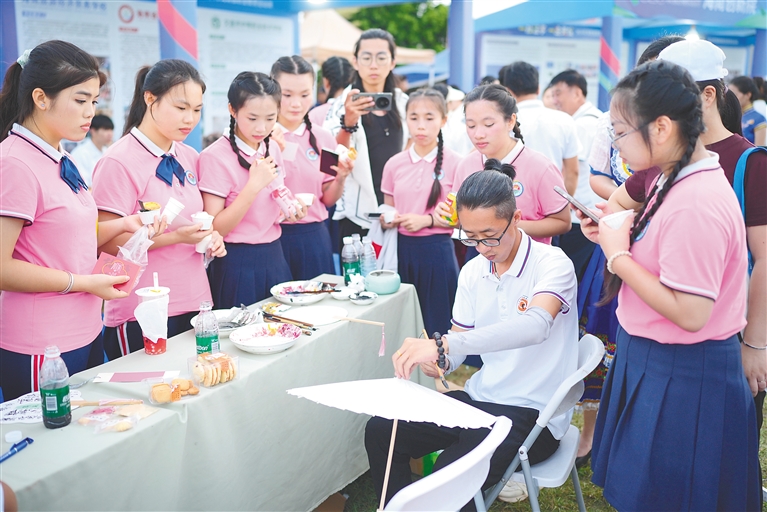 5月14日,2024年海南省職業教育活動周啟動儀式暨全省職業院校技能大賽開幕式在??跒撑e行。海南20余所職業院校的學生帶來手工制茶、藝術插花等技能展示。海南日報記者 張茂 攝