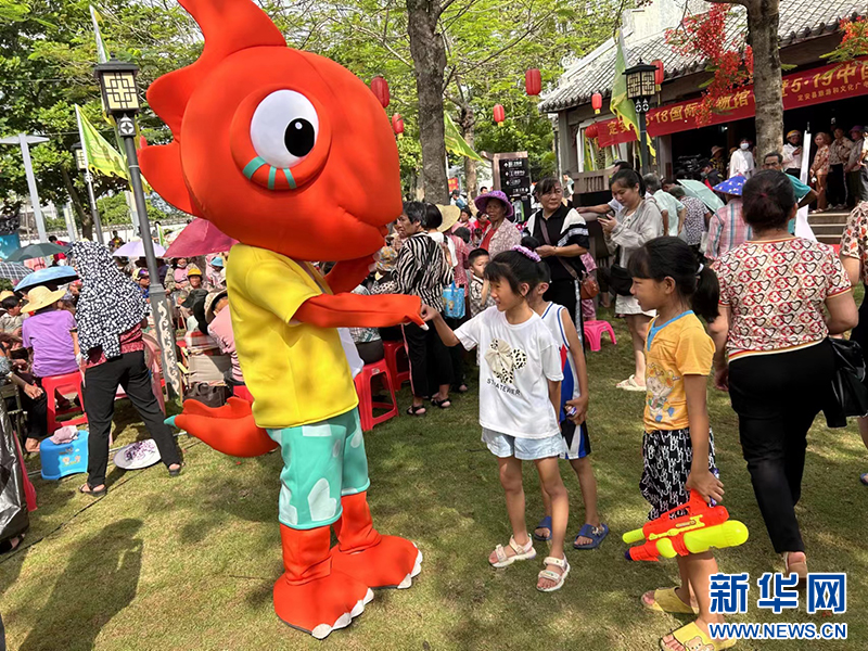 “海南文明形象IP”雷公馬“海小文”在活動現場與小朋友互動。新華網發