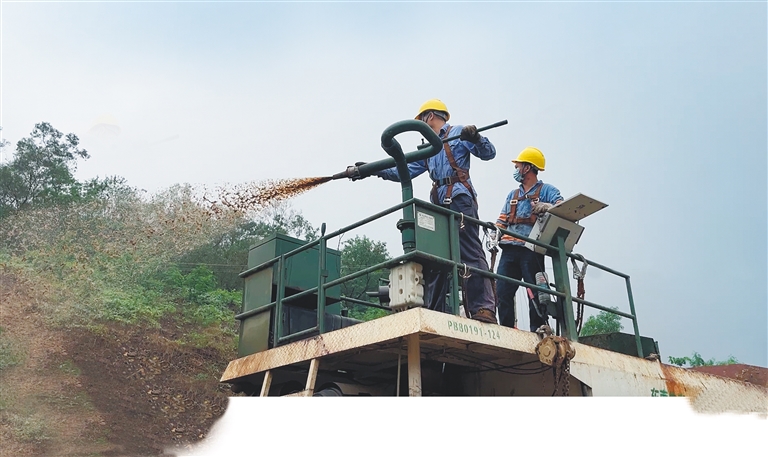 工人在噴播作業。海南日報記者 劉婧姝 攝