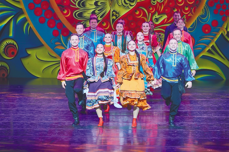穿上比彩虹還絢麗的民族服裝,跳起像伏特加一樣熱烈的舞蹈,6月22日晚,來自俄羅斯的“伊夫什卡”國立模范歌舞團為海南觀眾帶來精彩表演。