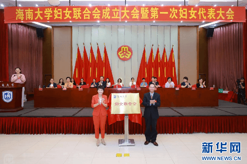 海南省婦聯黨組書記、主席陳健嬌,海南大學黨委書記符宣國為婦女聯合會揭牌。新華網發