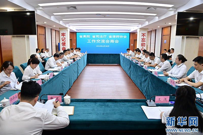6月28日下午,海南省高級人民法院、省司法廳、省律師協會召開工作交流會商會,凝聚法治共識,深化良性互動,共同努力構建相互理解、相互尊重、平等交流、合作共贏的司法與法律服務協作新格局,推動司法審判和法律服務水平“雙提升”,為推進海南自貿港建設和高質量發展提供更加有力的法治保障。