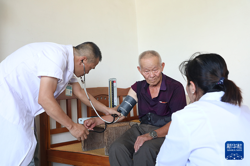 8月6日,海南省屯昌縣坡心鎮的村醫上門為村民篩查慢性病。新華社記者 趙玉和 攝