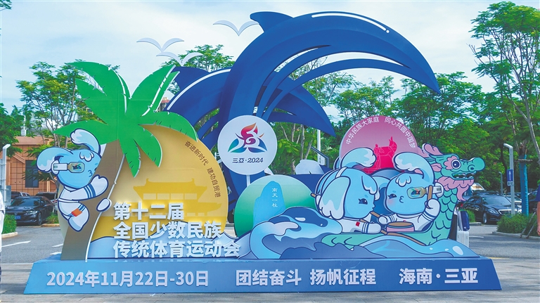行走在三亞街頭,富含運動會元素的宣傳標語、運動會海報、運動會元素燈箱、運動會吉祥物“吉貝”……整座城市已然進入“運動會時間”。