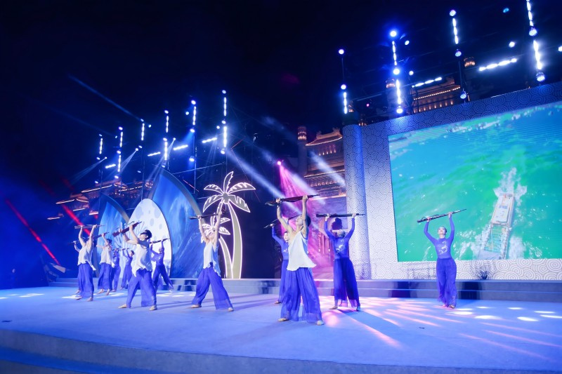 一支舞蹈《千帆競發 如戰赤壁》拉開了活動序幕。表演者以雄姿英發的戰舞,為觀眾演繹了臨高開漁節盛況,展現漁民出海開漁時刻百舸爭流、奮力爭先的精神狀態。