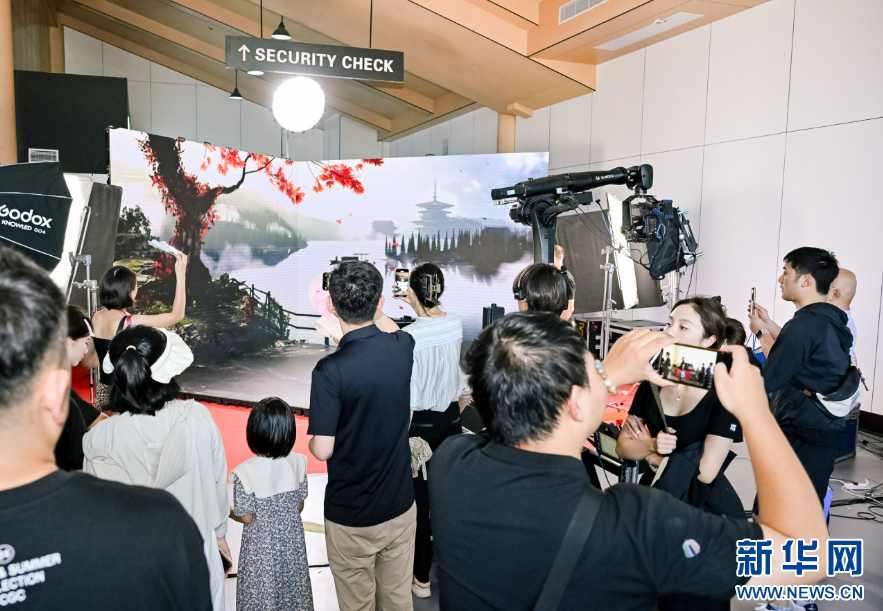采訪組在陵水海風國際影視基地參觀體驗。新華網發