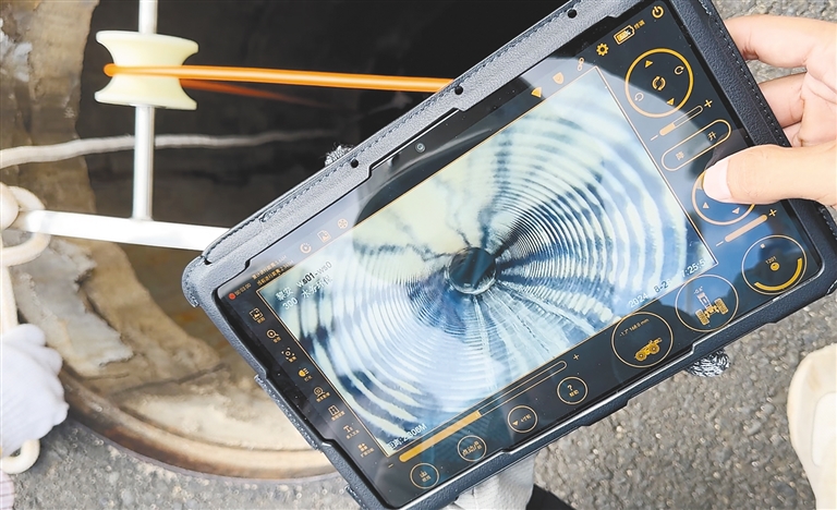 “機器人依靠牽引線可以前進約100米,在照明燈下,所攜帶的高清攝像頭將捕捉到的畫面和數據實時回傳到監控器,管道哪里破損、堵塞等,都一目了然?!绷晁h投集團運維技術部負責人盧孫鋒介紹?,F場,工作人員在控制終端上遙控機器人在管道內前進、后退,攝像頭靈活抬頭、低頭,隨著不斷深入,對管道內部進行全面細致的可視化“體檢”,精準排除“疑難雜癥”。