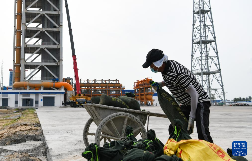 9月4日,在海南商業航天發射場二號發射工位附近,工作人員將防汛專用沙袋裝車準備運送到塔架上。新華社記者 楊冠宇 攝