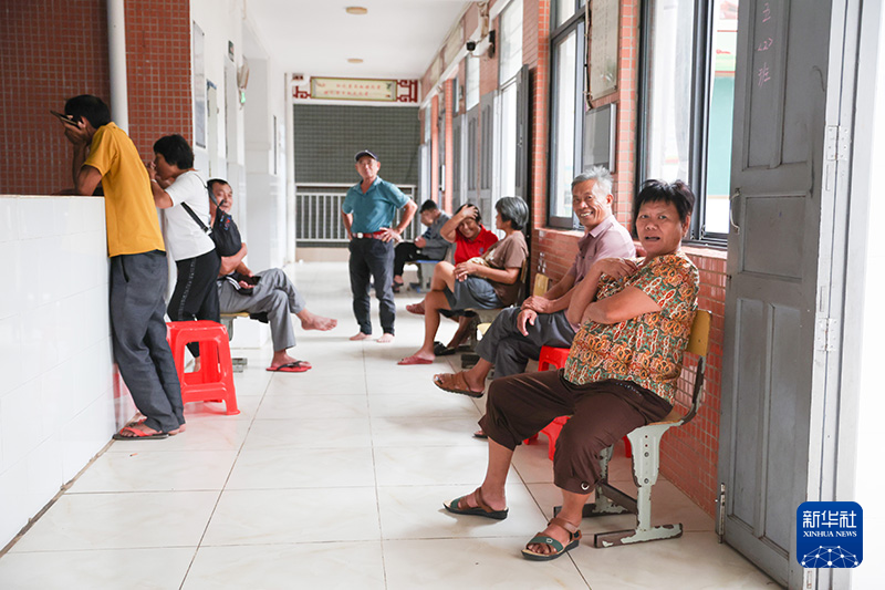 鋪前鎮中心小學安置的村民在走廊休息。新華社記者張麗蕓 攝