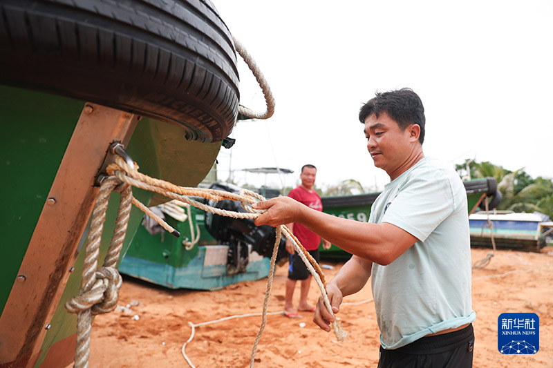 新華社???月6日電(記者羅江、吳茂輝、嚴鈺景)“摩羯”將至。5日下午,在文昌市公安局抱虎反走私綜合執法站附近,明月村村民陳孝今將漁船固定好,懸著的心終于放下?;貞?0年前“威馬遜”臺風來襲的場景,他至今心有余悸:盡管提前拖船上岸,還是被狂風巨浪損毀?!案兄x民警引導,這里離海夠遠、地勢也高?!彼嬲姑碱^,騎上電動車回家。
