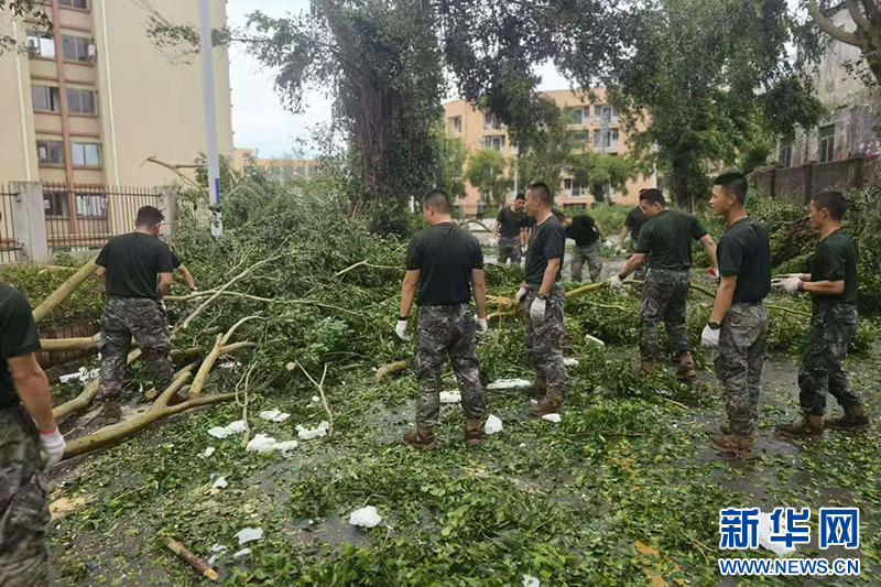 部隊官兵協助園區進行道路清障和搶險救災工作。新華網發