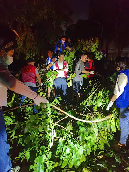 9月9日晚,市委網信辦迅速響應市委號召,黨員干部前往濱涯社區開展災后街道清理工作。