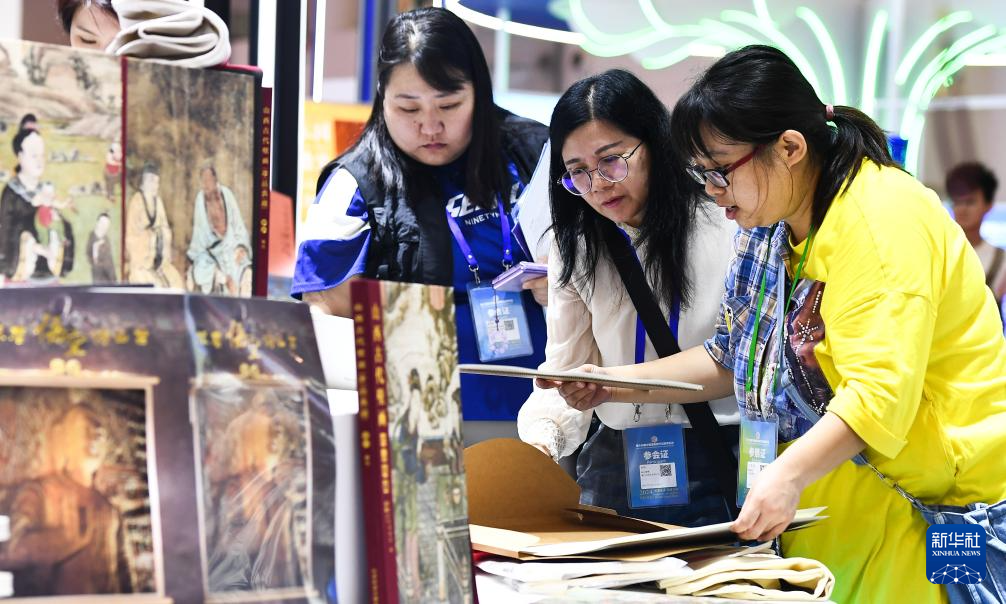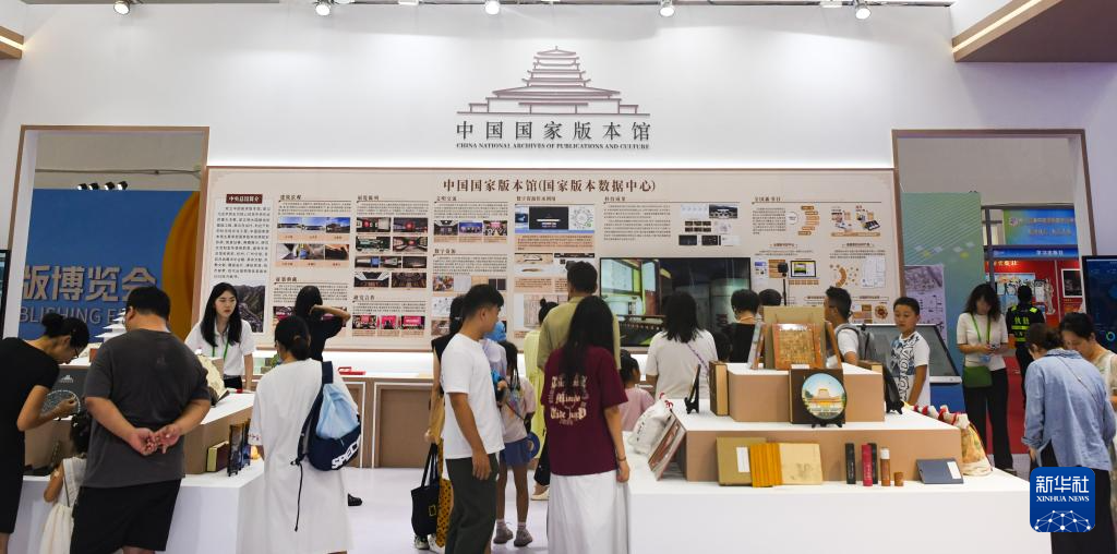 9月21日,觀眾在第十四屆中國國際數字出版博覽會上的中國國家版本館展臺參觀。