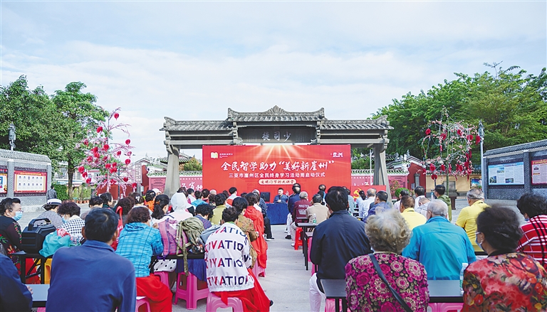 一個又一個宣講活動大幕拉開,一場又一場理論“甘霖”灑向全區。近年來,崖州區用好區域特色資源,區城聯動統籌構建“1+4+N”理論宣講矩陣,創新打造“聲潤崖州”黨的理論宣講品牌,“文明門下大講堂”“自貿港大講壇”“傳承紅色基因”“同心大講壇”4個特色系列講堂,以及各單位各村(社區)結合本地區本部門本系統特色開展的N個宣講活動等各個方面、各個層級的理論宣講緊鑼密鼓地上演,用黨的創新理論統一思想、凝聚力量、煥發斗志。