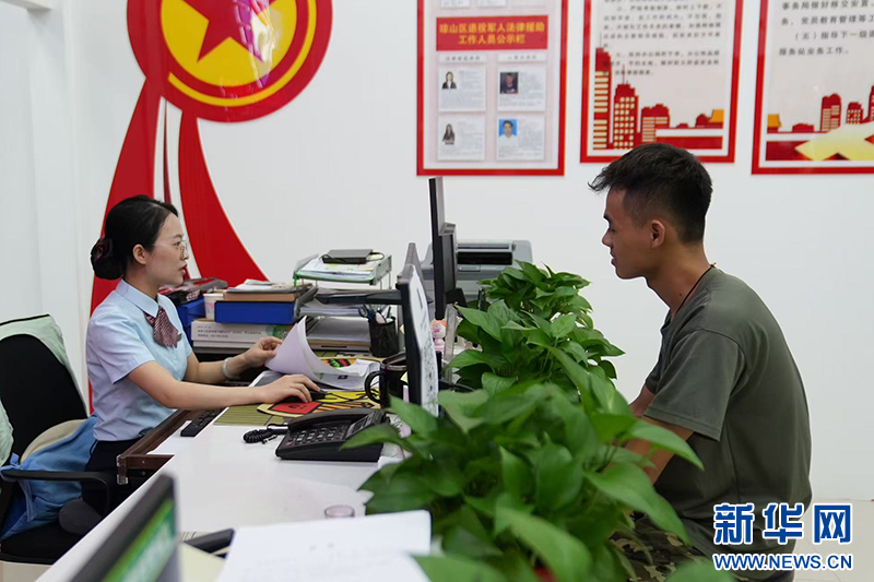 退役軍人沈世程在??谑协偵絽^退役軍人服務中心辦理相關業務。新華網發