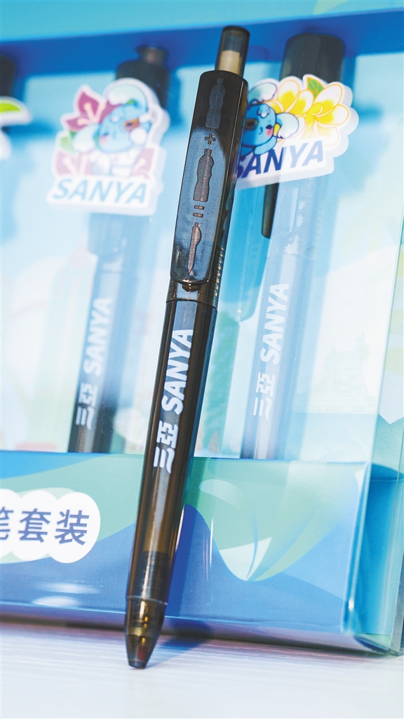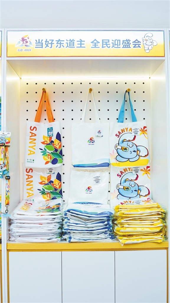 在三亞的全國首家運動會官方特許商品展示廳,用塑料瓶制作的手提袋格外醒目。通訊員 黃東光 攝