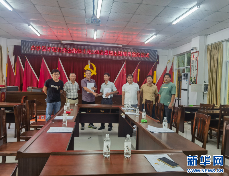 白沙縣牙旺村委會集體土地160畝果園出租項目簽約儀式現場。新華網發