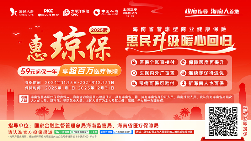 即日起,海南人民可關注官方投保平臺“海南惠瓊?!蔽⑿殴娞?,為本人及家人進行投保。參保期截至2024年12月31日,保障期為2025年1月1日至12月31日。