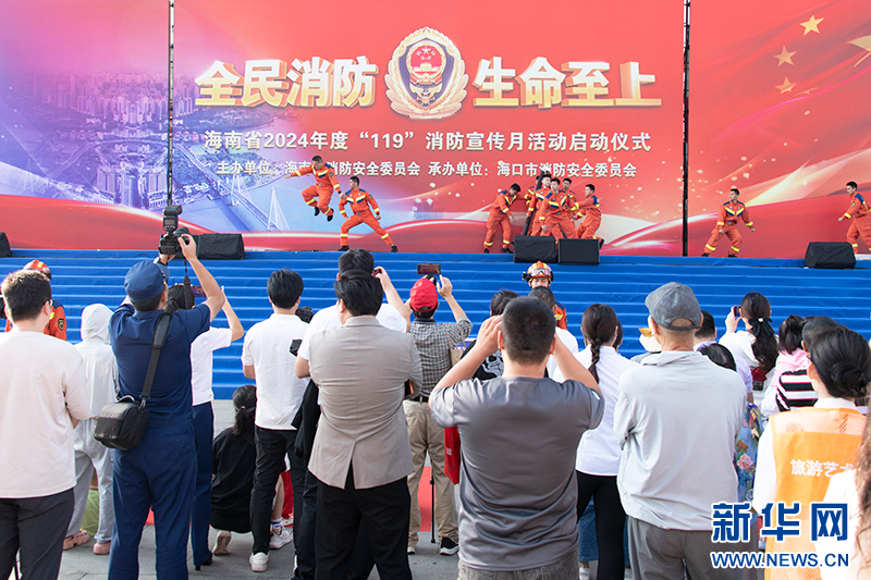 11月8日上午,以“全民消防、生命至上”為主題的2024年海南省“119”消防宣傳月活動啟動儀式在??谑信e行。