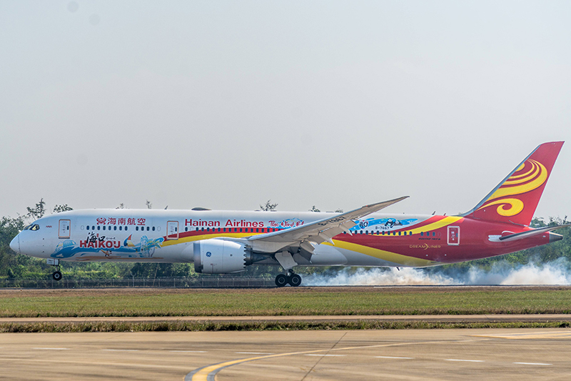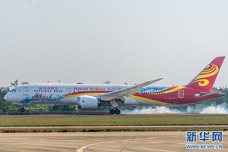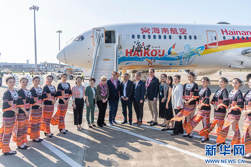 海南航空“??谔枴辈世L涂裝寬體客機全程保障此次費城交響樂團來華演出包機任務。新華網發