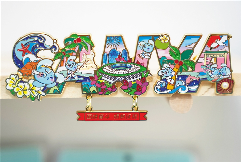 運動會官方特許商品展示廳內的冰箱貼。海南日報全媒體記者 李天平 攝
