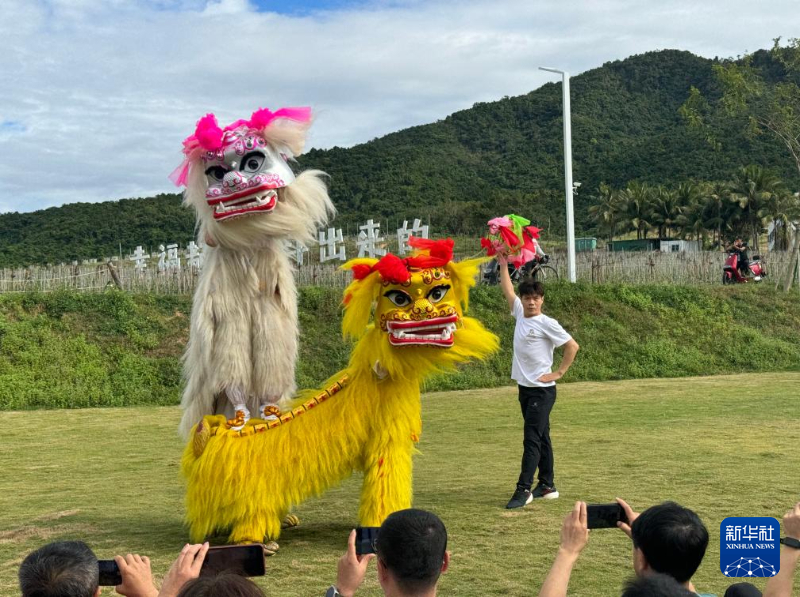 一曲海南民歌過后,北京市代表團舞獅隊表演了《獅韻中華》,兩只栩栩如生的舞獅隨著音樂入場,歡快地舞動著,引得海南省代表團運動員和當地群眾拍手叫好。
