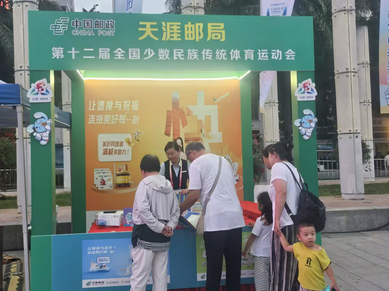 中國郵政為本屆運動會特別發行了《第十二屆全國少數民族傳統體育運動會》系列紀念郵品,包括限量版紀念郵資明信片、紀念郵冊、紀念郵折、連體郵資明信片和多款紀念封片等,這些郵品不僅承載著極高的收藏價值,更成為了連接各民族情感的橋梁與紐帶。在三亞市解放路郵政營業廳,集郵愛好者們一大早便排起了長隊,爭相購買這些珍貴的紀念郵品。三亞郵政為此次紀念郵品發行做了充分準備,不僅征集了集郵愛好者的意見與建議,還特別推出了種類繁多的活動郵戳,包括會徽和吉祥物文化日戳、開閉幕式紀念日戳以及運動項目紀念戳等,贏得了集郵愛好者們的廣泛贊譽。