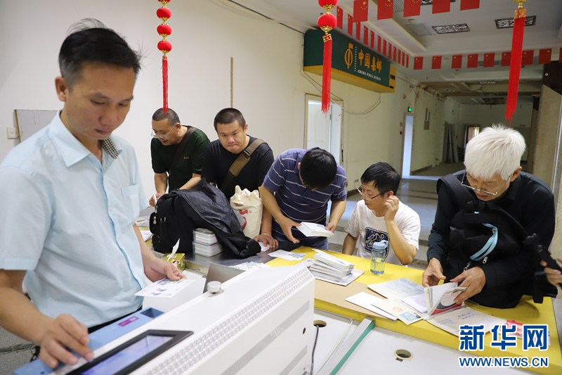 工作人員在為集郵愛好者提供過彩色郵資機戳服務(林志緯 攝)
