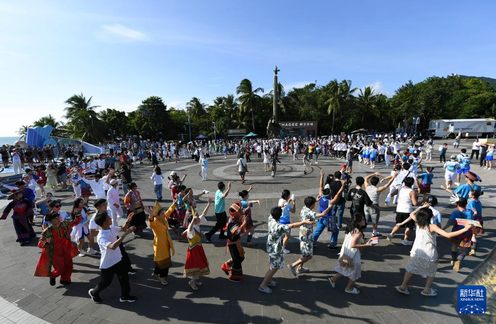 百花民舞場背靠大海,經典民族舞蹈與海南特色舞蹈在此上演,吸引不少選手駐足,也有人在演出間隙拾級而下,踏上沙灘。新疆代表團沙哈爾地表演項目的穆斯塔帕·艾合買提平時在阿克蘇工作,這次來到三亞第一次看到大海,身著維吾爾族風格的漂亮服裝,他在海邊留下一張“人生照片”。