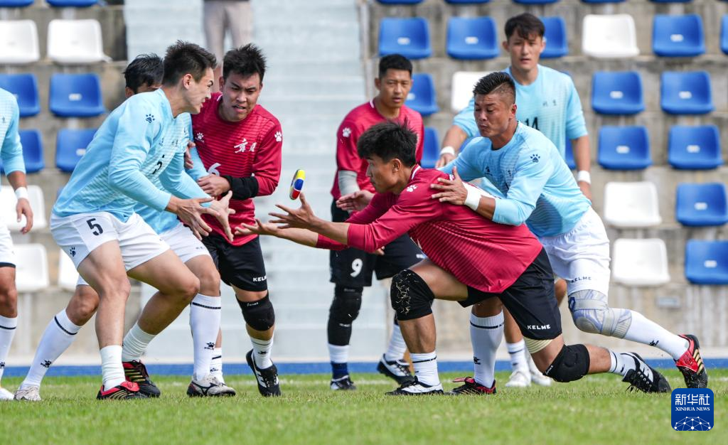 11月25日,北京隊選手與寧夏隊選手在第十二屆全國少數民族傳統體育運動會花炮項目比賽中拼搶。新華社記者 晉美多吉 攝