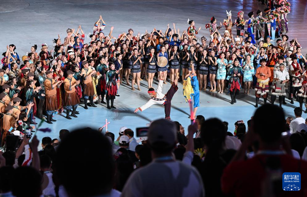 “在賽事之外,能有這樣盛大的民族大聯歡活動,讓我們看到56個民族各自的文化,并且能有機會互相交流認識,是非常棒的體驗?!卑拈T代表團表演項目運動員黃梓軒說。他之前只在課本上了解過56個民族,如今親眼看到,非常震撼。作為澳門大學一名傳統文化藝術領域的教師,他拍了許多照片,打算回去和同學們分享。