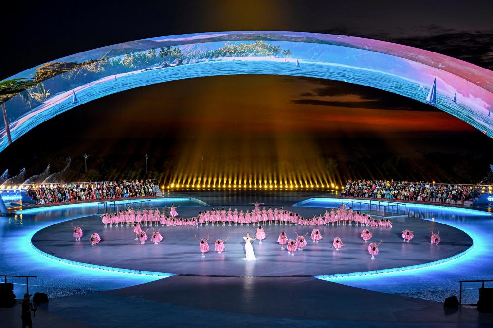 這是11月26日拍攝的聯歡晚會現場。當日,第十二屆全國少數民族傳統體育運動會民族大聯歡活動在海南省三亞市舉行。新華社記者 郭程 攝