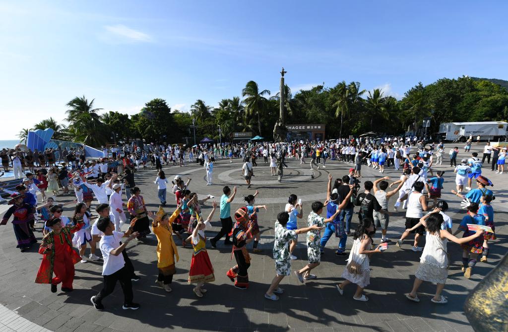 新華社三亞11月26日電(記者張逸飛、譚暢)在三亞的碧海藍天下,一場別開生面的民族大聯歡活動將這里裝點得格外絢爛多彩。作為第十二屆全國少數民族傳統體育運動會(以下簡稱“運動會”)的重要環節,民族大聯歡不僅彰顯了各民族文化的獨特風采,更在輕松愉快的氛圍中促進了各民族之間的深入交流與融合。