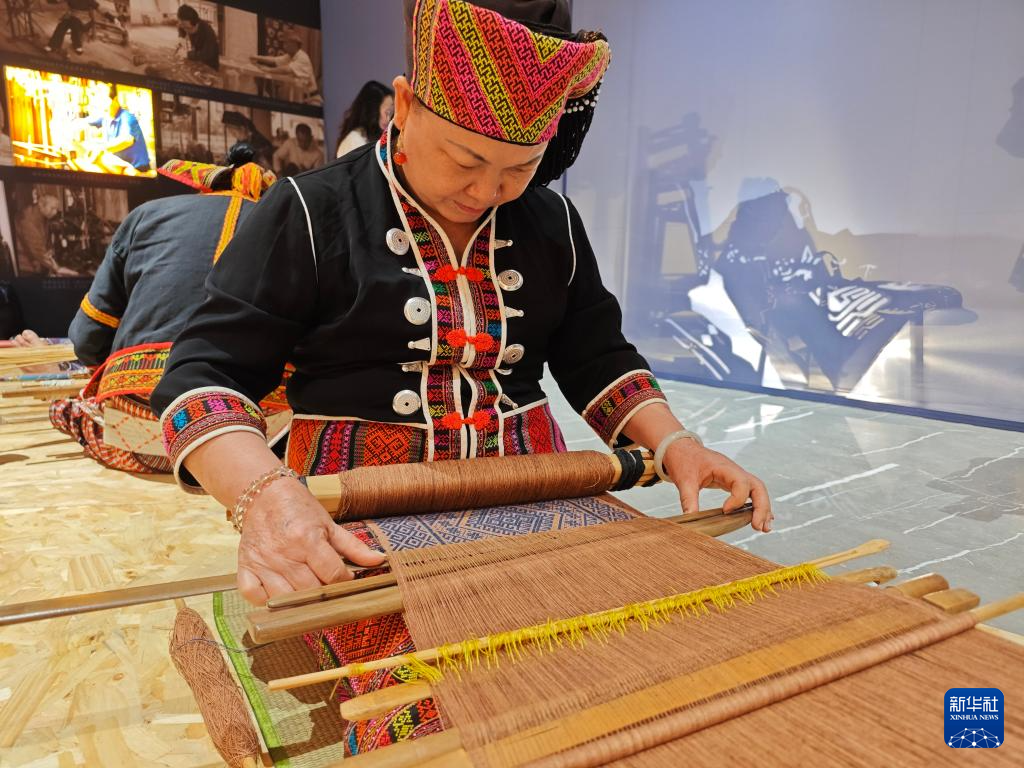 11月8日,劉香蘭在2024年(第四屆)海南錦繡世界文化周活動現場展示織錦技藝。新華社記者 周慧敏 攝