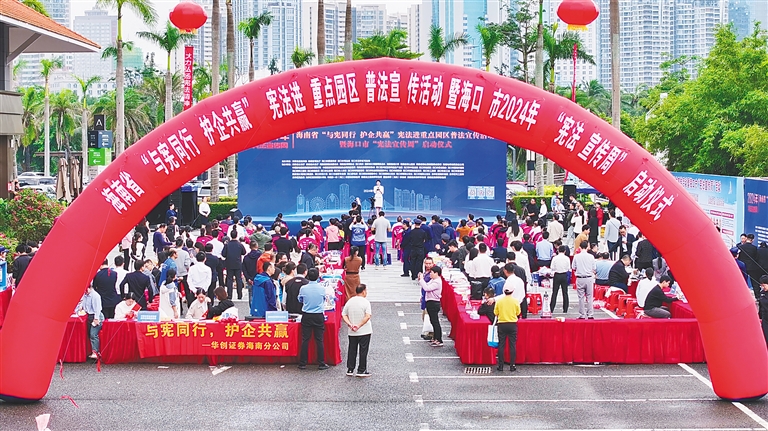 十二月二日,海南省“與憲同行 護企共贏”憲法進重點園區普法宣傳活動暨??谑?024年“憲法宣傳周”啟動儀式舉行。