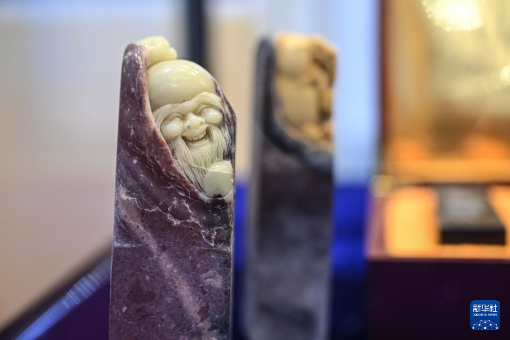12月20日在2024海南國際知識產權交易大會現場拍攝的石雕藝術品。新華社記者 蒲曉旭 攝