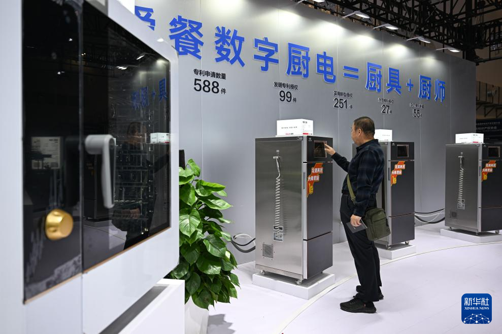 12月20日,觀眾在2024海南國際知識產權交易大會現場體驗機器人廚師。新華社記者 蒲曉旭 攝