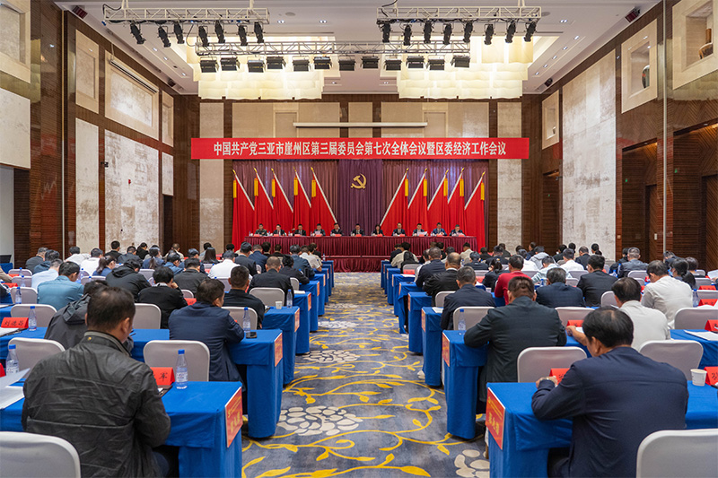 中國共產黨三亞市崖州區第三屆委員會第七次全體會議暨區委經濟工作會議現場。新華網發