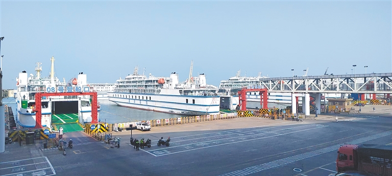 新海港碼頭等待開船的客滾船。海南日報全媒體記者 黨朝峰 攝